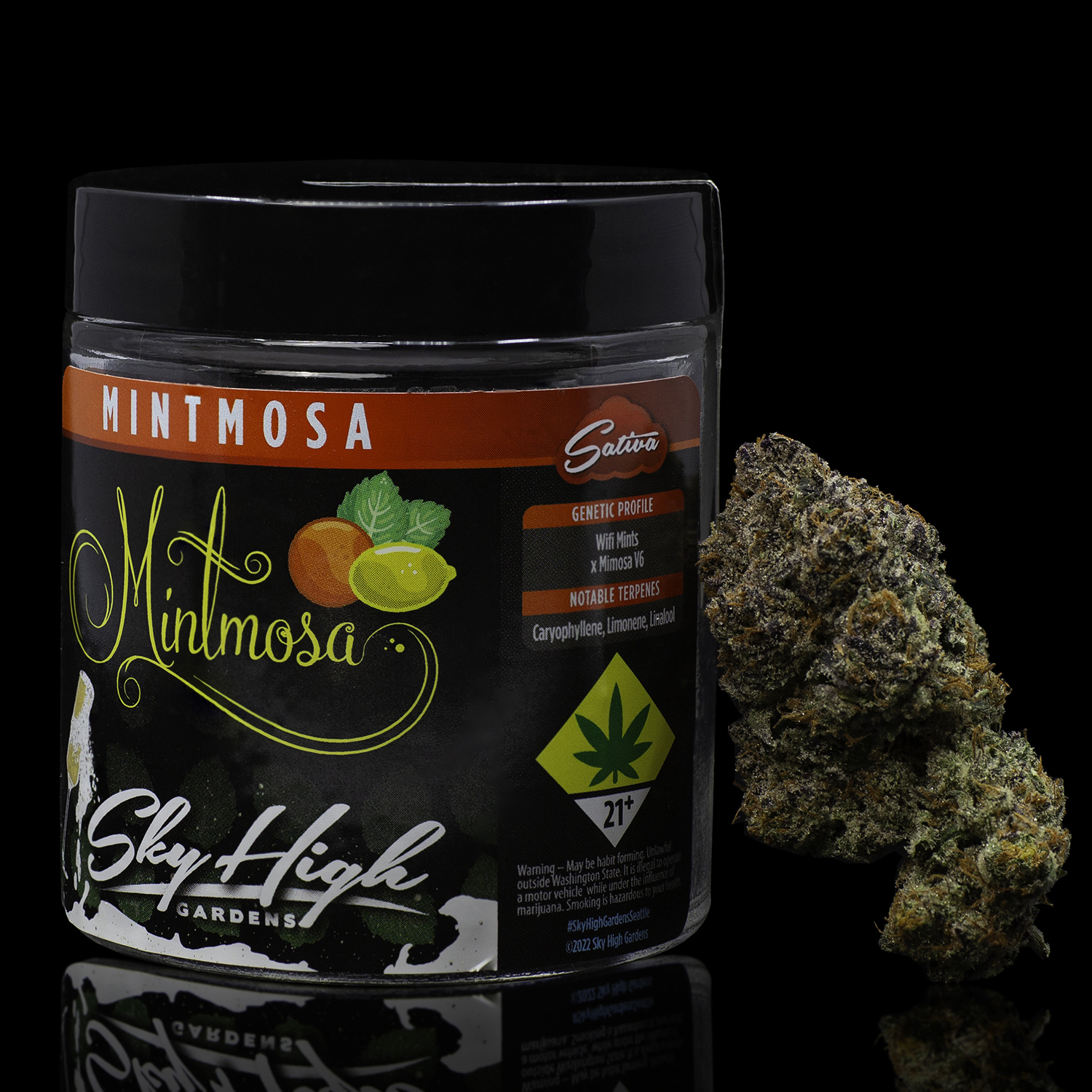 (Wifi Mints x Mimosa V6). Treat yourself to a celebration of the senses with Mintmosa. Revel in the bright citrus aroma and float into the clouds with the uplifting effect of this sativa-leaning hybrid. Perfect for Sunday brunch or anytime you need a pick-me-up, this effervescent bud will have you feeling bubbly inside and out with its full body, euphoric effect.