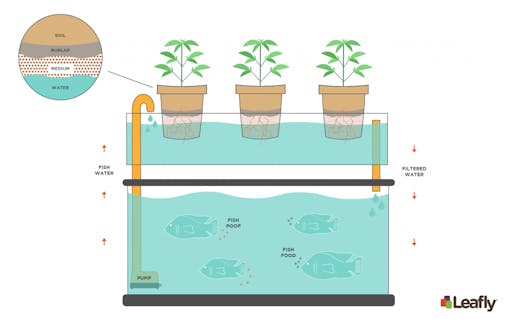 Aquaponics utilizes a hydroponic setup for growing weed, with the addition of fish in the water chamber. This allows you to skip putting liquid nutrients in plants and instead rely on the waste of fish, a more natural source of nutrients.