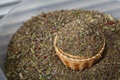 ![Homemade face mask made of clay with cannabis seeds.]()