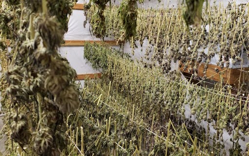They are careful not to remove all the leaves, as some cover from smaller fan and sugar leaf can actually help protect the resin throughout the drying and curing process.