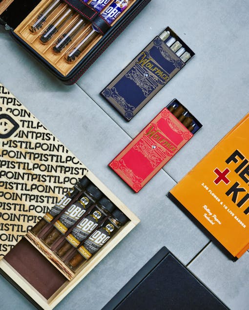 His gift for visual communication is best displayed in Lobo’s presentation. From the artwork and packaging, to glass mouthpieces that come in their cigars, Lobo strives for every product to hit like it was pearled by Snoop’s personal roller.