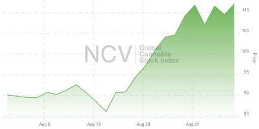 The index moved from 33.16 on Aug. 31, 2016, to 87.08 just over two months later. Investors notched gains of 163% before it selling off following the surprise victory of President Trump, which was seen as potentially negative for legalization.