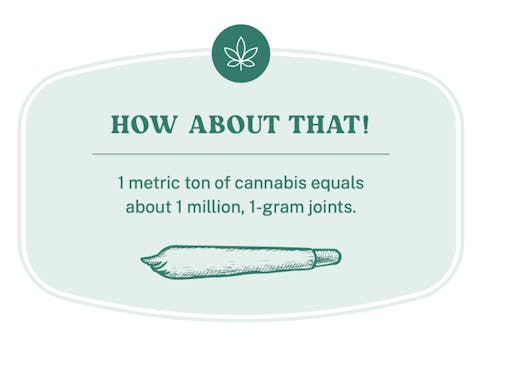 A: Adult-use cannabis farms in the US grew 2,834 metric tons of cannabis in the past year. Medical and illicit production is 3 to 5 times bigger and includes some illicit inflows from Mexico.