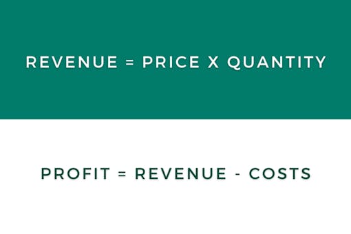 Of course, increasing revenue is not the only consideration. Your fixed and variable costs (e.g., product costs, employees, rent, etc.) must be lower than the price you charge per unit x the number of units sold – otherwise known as revenue.