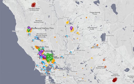 One of the best tools we’ve come across to keep tabs on the ongoing fires is the San Francisco Chronicle’s interactive map, which shows how the blazes have spread over the past week, destroying property and hurting nearby air quality.
