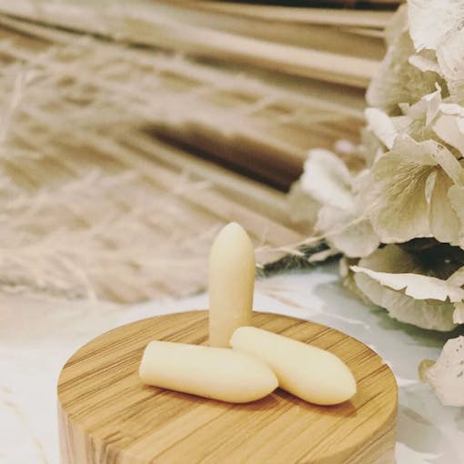 Prairie Grass suppositories are made with the cannabis cultivated on their family farm and combined with a pharmaceutical base to make pods. They’re shaped like little bullets for easy insertion and kind of look like tiny pods.