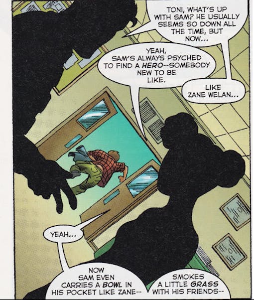 If you were an avid comic book reader between 1999 and 2000, you may remember Marvel Comics’ Fastlane, a four-part story arc that involved Peter Parker warding off the influence of cannabis from a Daily Bugle intern named Sam Exmore—while also warning its audience of the dangers of smoking weed.
