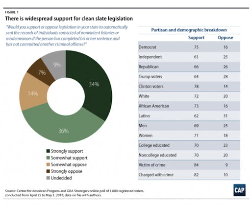 “American voters are ready to move forward with this important legislation,” the survey’s authors write, “and politicians should take their lead and bring clean slate to fruition to help nonviolent offenders move on with their lives and successfully reintegrate into American life.”