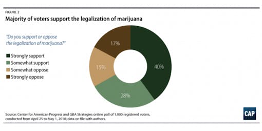 A majority of all partisan, gender, and racial groups now support cannabis legalization, the poll found. Across all respondents, 68% said they favor legalization, with 40% saying they’re “strongly” in favor. That’s up since April, when a Quinnapiac poll found 63% support for legalization. In January, that number was 58%.