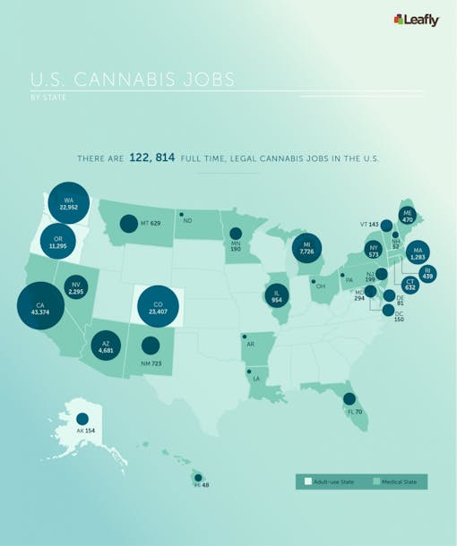 Editor’s note: Check out Leafly’s 2019 version of our Legal Jobs Count, which provides a state-by-state breakdown of the 211,000 full-time jobs the legal cannabis industry has created in America.