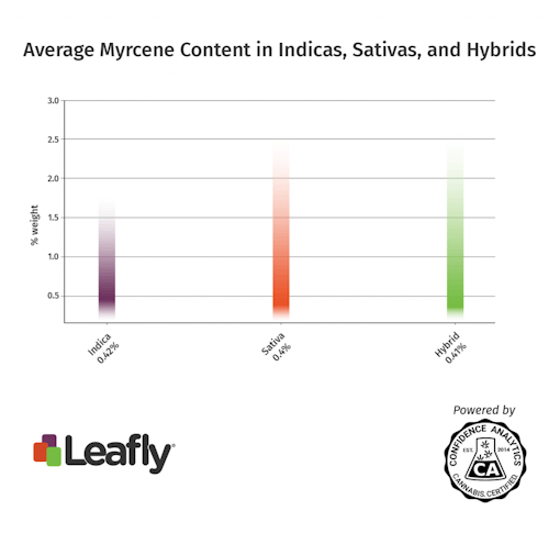 Showing you dispensaries nearMyrcene levels in indica and sativa strains