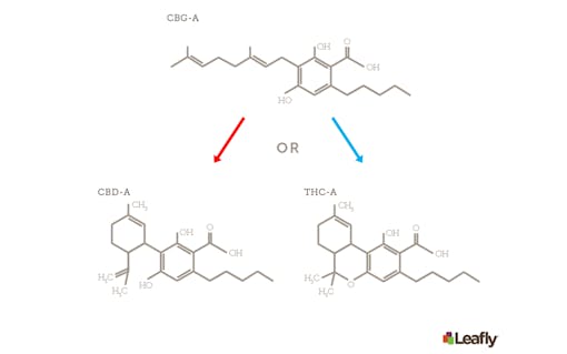 These eventually become THC, CBD, or CBC, respectively. CBGA may also convert to CBG, but in a majority of strains, CBGA eventually converts into either THC or CBD.