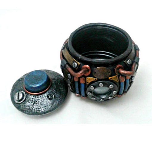 Artist JT Blake makes unique stash jar creations through his Etsy shop, LeftHandAsylum. Among myriad monster jars, like this Mini Cthulhu, he also dives into the Steampunk world with his charming Industrial Stash Jar. Items are limited, but you can always request a custom order for your own individual JT piece.