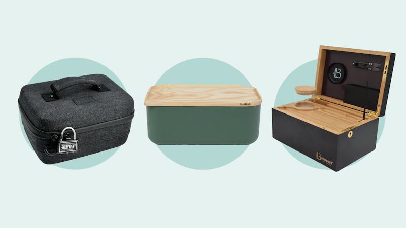 We found options that prioritize odor control to lock down loud strains and thoughtful boxes designed as joint-rolling and bowl-loading stations on top of storage solutions. You’ll find teeny boxes for bags, hefty ones for serious cannasseurs only, and a whole bunch of just-right boxes in between.