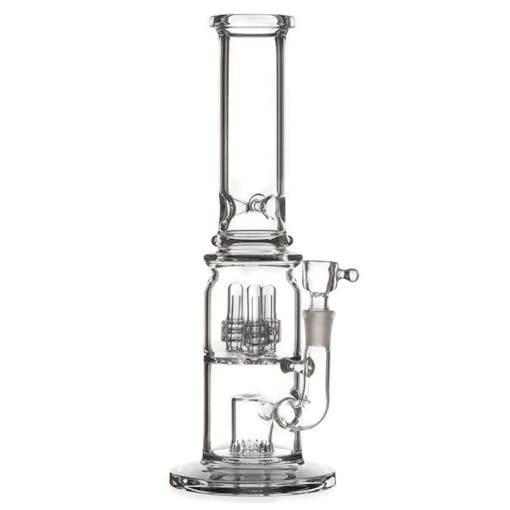 For flower lovers looking to score a sweet new water pipe for the holiday season, look no further than this 12” triple matrix percolated piece from 420 Science. With a slick scientific glass aesthetic, this straight 3mm thick borosilicate tube will generate enough percolation to filter any size toke for a smooth, clean pull every time.