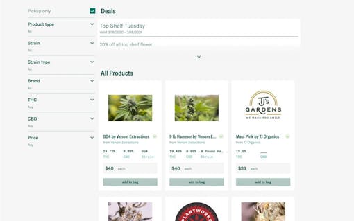• Peruse their menu for your favorite products—you can search by product type, brand, strain, and more.