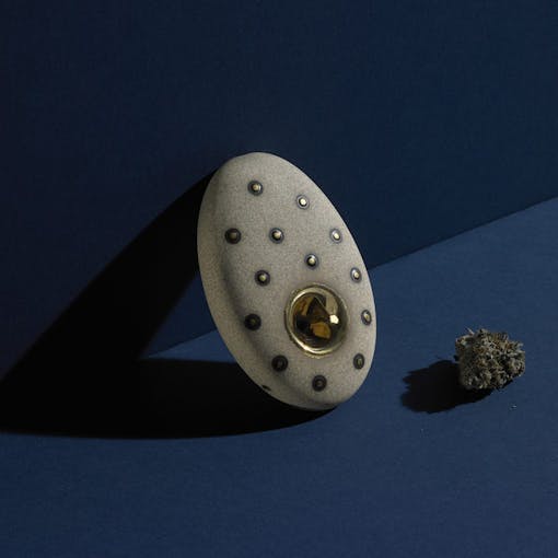 Stoneware and 22k gold combine for simple elegance in this hand pipe. (Patrick Barta for Leafly)