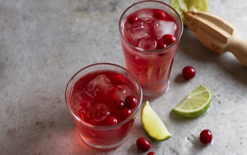 - Add two tablespoons of cranberry simple syrup and top off the remainder with Newton’s lemon lime soda.