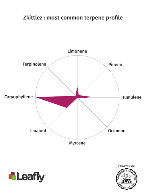 The terpene profile responsible for this wonderful treat is most commonly dominant in caryophyllene, with the rare humulene and linalool following. Zkittlez is a THC-dominant cannabis strain with levels typically hovering around 20%.