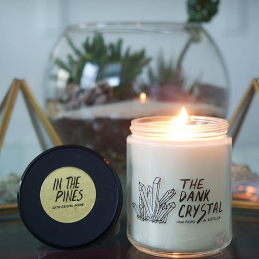 The Dank Crystal makes candles “lovingly infused with the dankest vibes”—that is, designed to pair with all your smoke seshes. Featuring aromas of sandalwood, fir needle, and palmarosa that will transport you to a cabin in to the snowy forests of Scandinavia, this candle burns down to reveal a crystal beneath the wax.