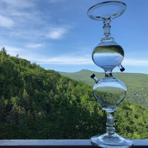 Designed for big and beautiful hits, this gorgeous feat of cannabis engineering turns the classic gravity bong on its head (literally). Its hourglass shape allows you to flip it over, and the cascading water within draws smoke from your bowl piece into the chamber, where it can then be inhaled. It’s the perfect conversation piece to share when friends join you for an evening in.
