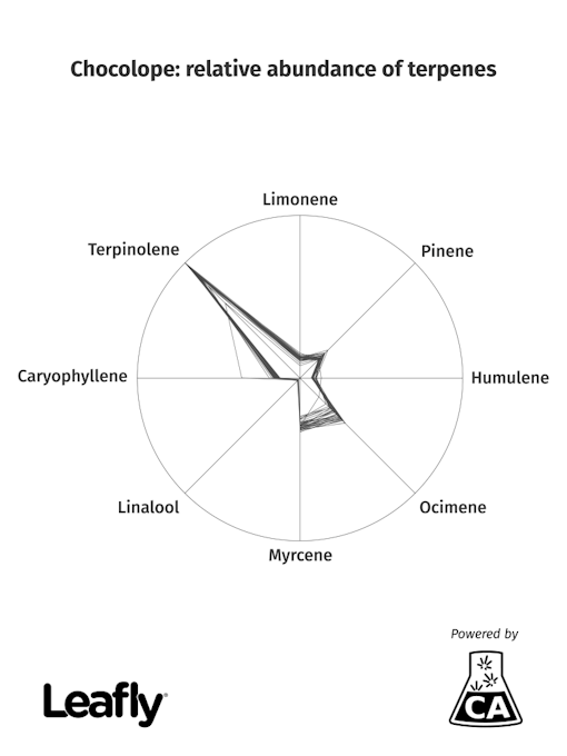 So if you prefer the effects of high-THC cannabis strains that are dominant in limonene and caryophyllene, you can trust that Gabriel’s Sherbet will provide you with the experience you know and love every time. Or if you prefer terpinolene-dominant high-THC strains, their Chocolope is guaranteed to get you right.