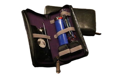 Compact, smell-proof, sleek—what more could you possibly need in a portable stash kit? The K.I.T. by Erbanna boasts convenient elastic holders, grinder card, sticky mat, poker tool, containers, and enough room for an extra pre-roll or vape pen. Toss it in your purse or slip it in your back pocket for a discreet yet fulfilling session.