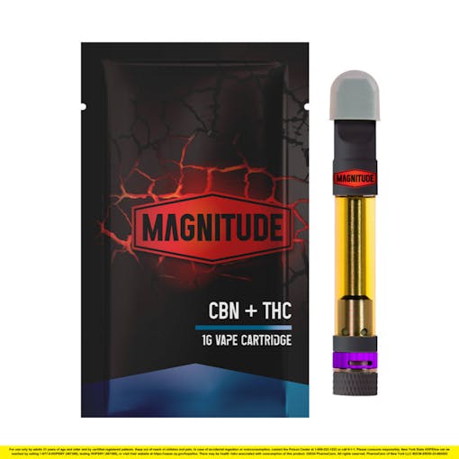 CBN is this year’s breakout cannabinoid, and Magnitude is one of the first outfits out there to offer a vape cartridge that combines CBN and THC into one unit, and Matt’s just one of the blend’s many fans. CBN (aka cannabinol) is a non-intoxicating novel cannabinoid related to, but distinct from, its more famous older sibling, CBD. CBN has started to make a name for itself on its own, but the party really gets going when you pair CBN with THC. This tendency of cannabinoids to work together to be more than the sum of their parts is called the “entourage effect,” and Magnitude is one of the only vape brands out there that is offering products that employ this CBN+THC combo to incredible effect.