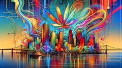 ![A vibrant, abstract illustration that celebrates California’s cannabis culture, incorporating iconic landmarks and landscapes. The Golden Gate Bridge stretches across a sunlit bay, surrounded by stylized representations of beaches, redwood forests, and rolling hills of wine country. Artistic line graphs float above, hinting at the industry's growth, while abstract elements and tech symbols nod to Silicon Valley. The illustration bursts with the golden and blue hues of California’s sunshine and the Pacific Ocean, embodying the state's innovative and relaxed spirit.]()
