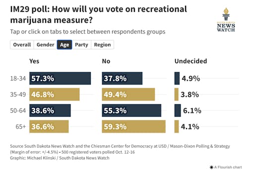South Dakota will vote again on legalization this November. Measure 29 legalizes 2 ounces of flower, 16 grams of hash, and 1600 milligrams of THC in edibles. You could grow up to 12 plants per household. October polling indicates Measure 29 still hasn’t connected with a majority of South Dakotans—it has 44% of the vote and needs to get to 50. Older South Dakotans especially don’t like it.