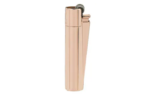 Upgrade your Bic to a classic Clipper in brushed and polished rose gold. The flint flame is child-resistant, refillable, and reflintable.