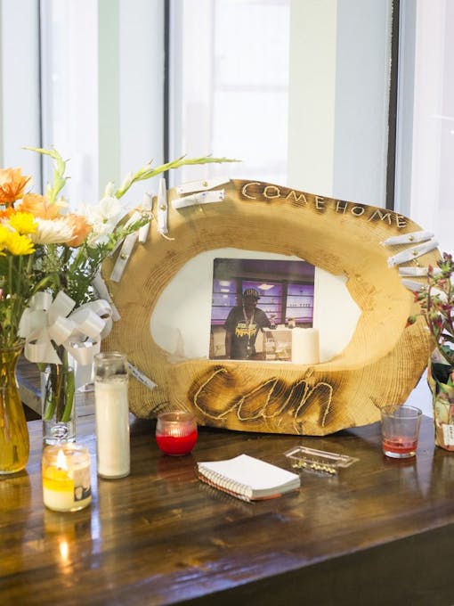 A site dedicated to Cameron Smith is set up inside the Lucid store in Cheney, Wash., Tuesday, Sept. 12, 2017. (Sofia Jaramillo for Leafly)
