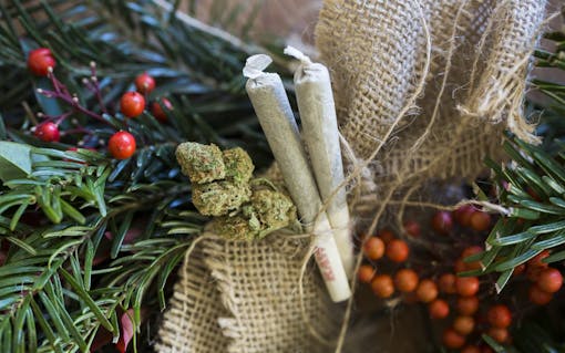 With cannabis flower tucked between the branches (and a couple of pre-rolls in there to boot), this craft is two gifts in one: quality cannabis and a gorgeous holiday decoration that will outlast the holiday smoke sessions it sparks. Pack a bowl and give the gift that keeps on giving with this surprisingly simple cannabis wreath.