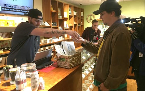 The pair bought three prerolls of Jack Herer shortly after the stroke of 6 o’clock. Sean Luse, BPG’s chief operating officer, wanted activists to be the first in line, and the activists wanted to honor Herer, the legalization activist and late author of The Emperor Wears No Clothes.