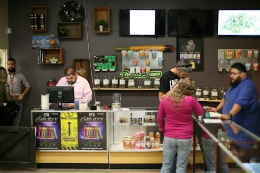 Despite the massive influx, she didn’t foresee any inventory shortages. While her edibles were running a bit low, which she attributed to suppliers scrambling to catch up with the state’s latest packaging requirements, she said she was well stocked on everything else. Knowing it’d be a busy day, she’d ordered ahead, and also has a grow facility attached to the dispensary, which they plan to keep under the state’s new microbusiness license.
