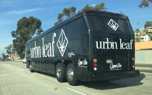 Every hour on the hour for most of Monday, the bus is running a loop between Urbn Leaf dispensary and Tap Room gastropub in nearby Pacific Beach. The buses are a marketing partnership between the dispensary, the restaurant and Cannabus, a party bus company whose expansion into canna-tourism and parties begins now.