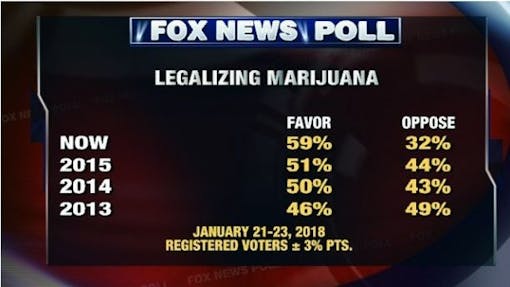 Will the poll results push the Trump administration to ease up on legal cannabis? That’s optimistic. The president hasn’t exactly shown a strong tendency to tailor his positions to poll numbers. But with the news of record support for legalization being broadcast on the commander-in-chief’s channel of choice, there’s at least a chance he saw it.