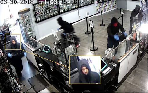 All in all, the whole caper was a strange episode. The crew was obviously well prepared, dressed all in black with face-obscuring hoodies and bandanas. They made the effort to all wear gloves. They arrived with large empty duffels and bags. They seemed to know exactly the products they wanted to steal. They were in and out in about two minutes. And yet…all that effort (and damage) to obtain cannabis products priced in the hundreds? We’re still trying to make sense of it.